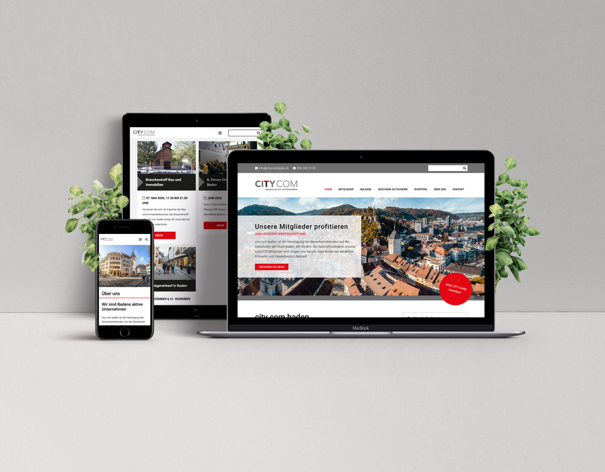 Citycom Baden erhielt eine neue Website mit simplen Bearbeitungsmöglichkeiten. Der Fokus lag hier vor allem auf den Mitgliedern, die in einer übersichtlichen Auflistung mit Filter dargestellt werden sollten. Auch die Events sind auf der neuen Website gut ersichtlich und bieten den Besuchern wichtige Informationen.