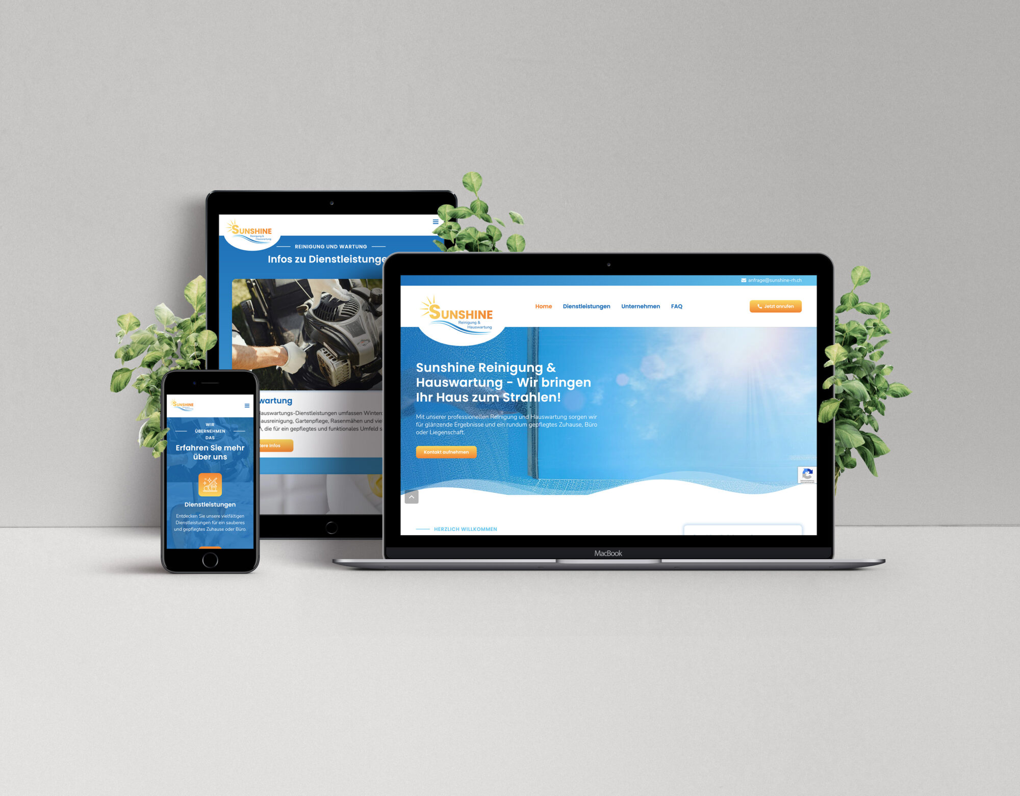 Die Kunden wünschten sich einen Webauftritt für die Sunshine Reinigung & Hauswartung. Das Ziel war es, eine einfache und übersichtliche Website zu gestalten, die farblich harmonisch und aufgestellt wirkt. Das gesamte Corporate Design wurde hier neu gestaltet mit frischen Farben und neuem Logo.